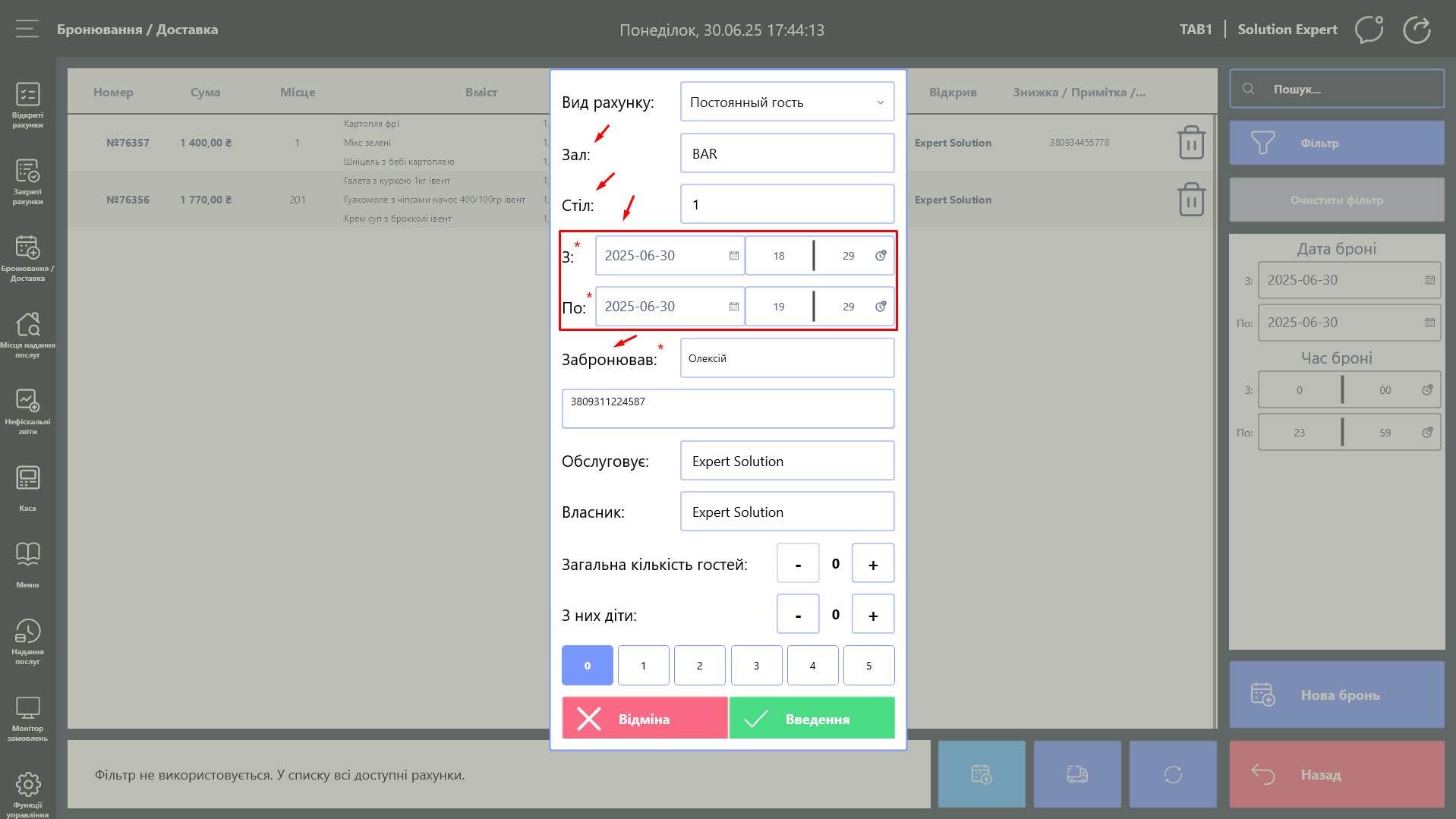 Дані які потрібно вказати обов`язково при створенні рахунку бронювання