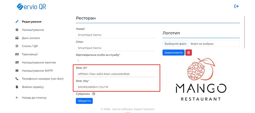 RestoID та SecretKey